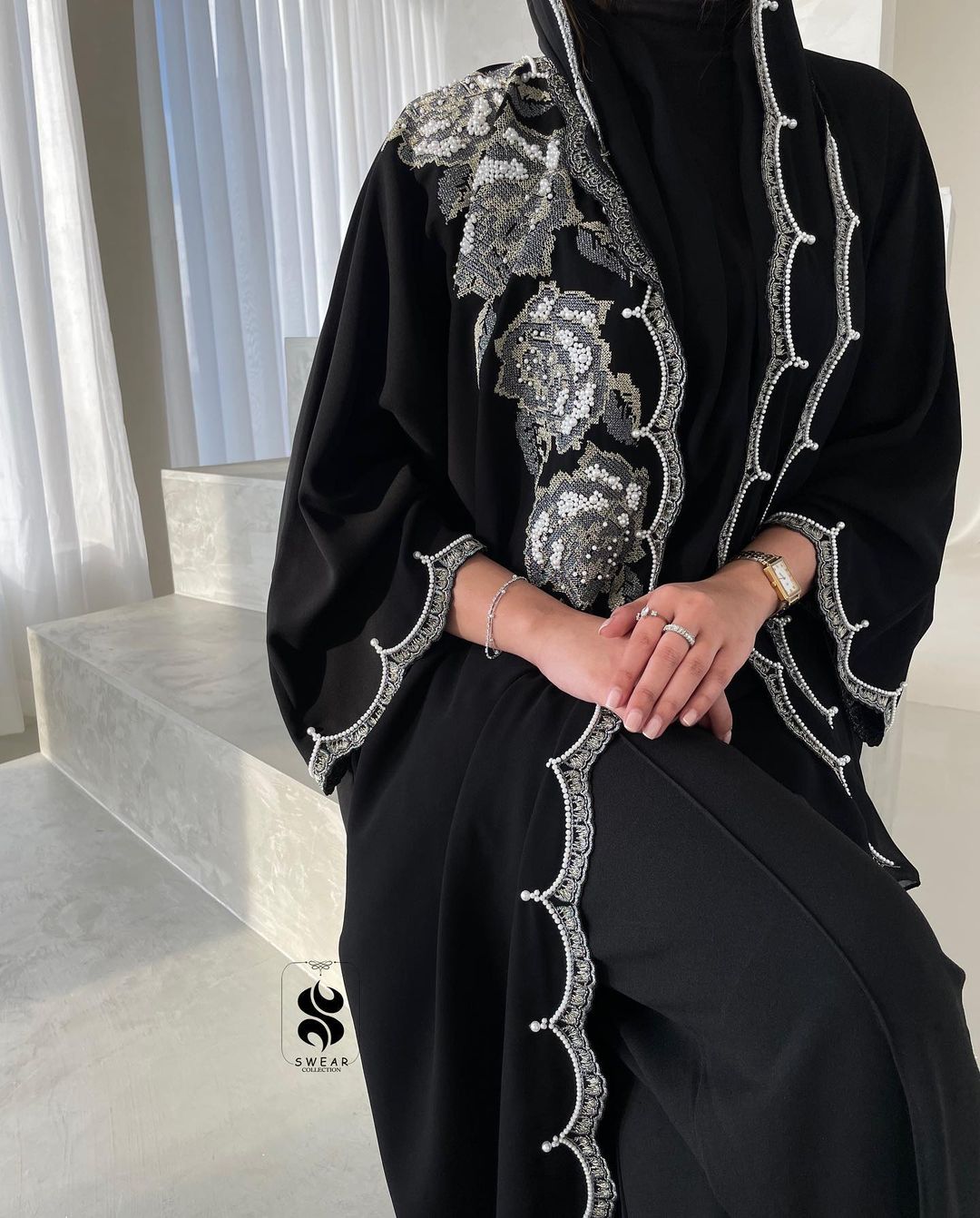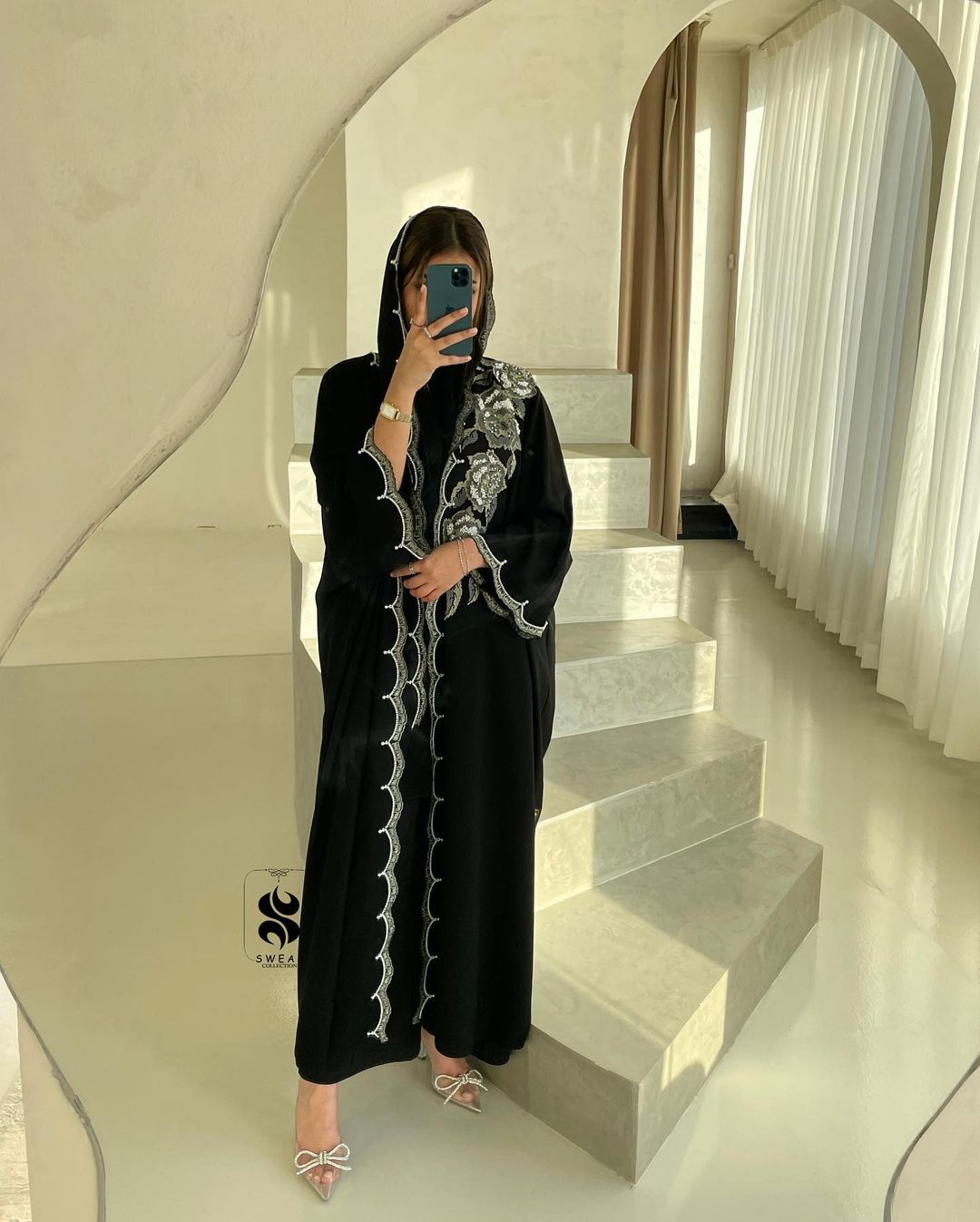 Product Code :sw0135 Buttons: no Abaya Fabric: Italian Kreeb Sheila Included : Yes Sheila Type : Plain with embroidery Sheila Fabric : Burj alemarat Sheila Size : 2.25 meters * 28 Garment Care : Dry Clean