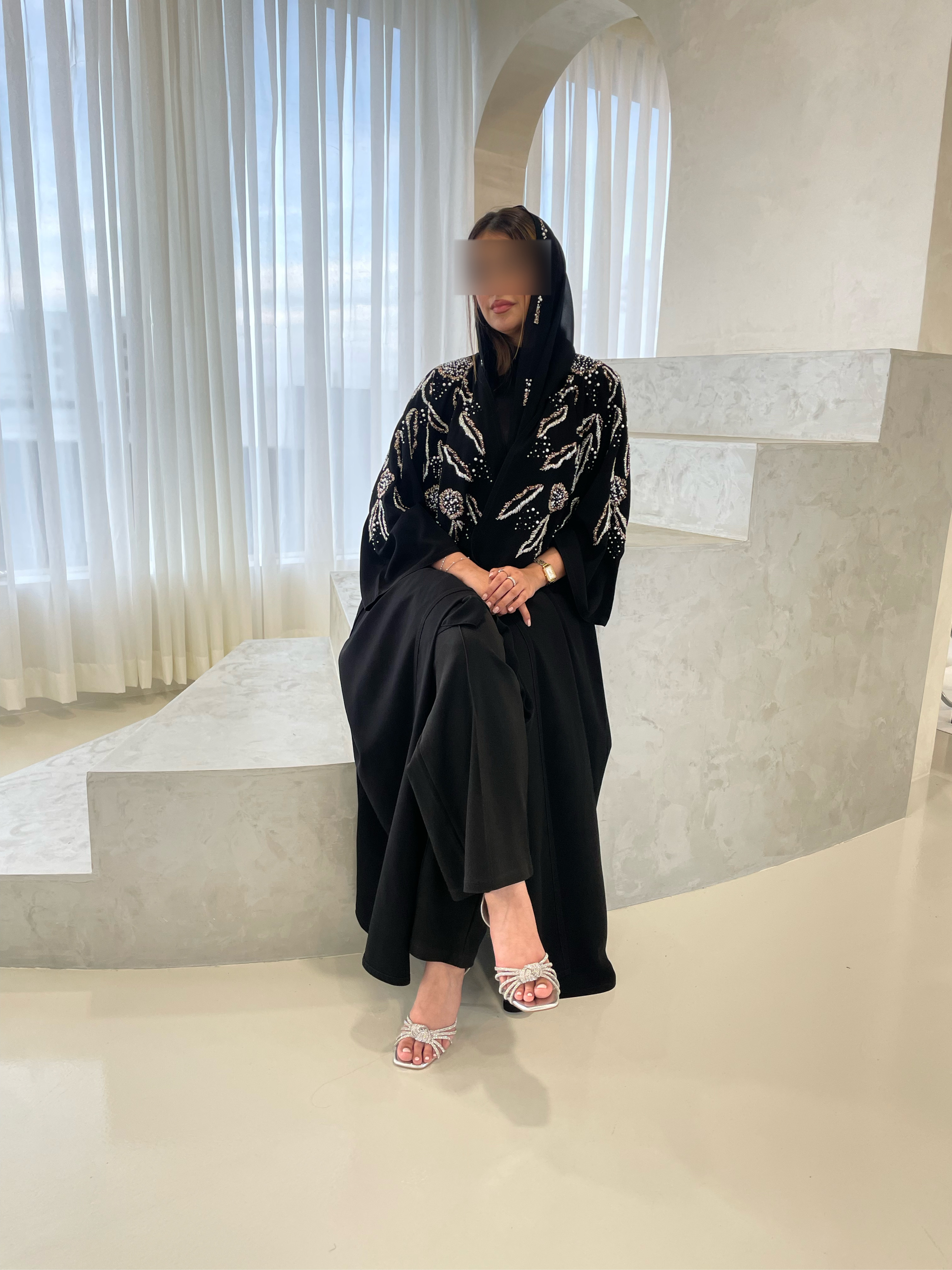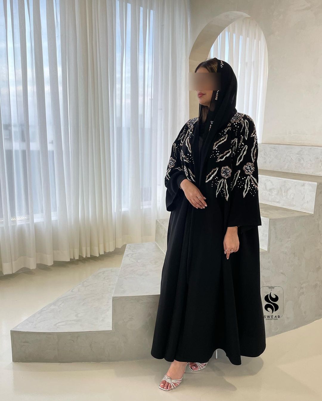Product Code : SW100 Buttons: no Abaya Fabric: Italian Kreeb Sheila Included : Yes Sheila Type : Plain with shek Sheila Fabric : Burj alemarat Sheila Size : 2.25 meters * 28 Garment Care : Dry Clean Note: Lining can be applied or Abaya fabric can be changed to Nada